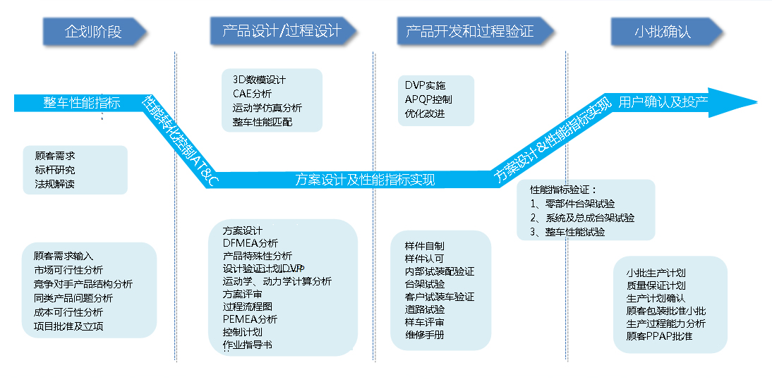 上海科曼始终坚持以客户需求为导向,以“技术的科曼,让驾乘更舒适”为设计开发理念,为客户提供******的空气悬架解决方案。科曼悬架系统产品实现分为四个阶段:企划阶段、产品设计&过程设计、产品开发和过程验证、小批确认。企划阶段主要是以客户整性能指标要求为基本输入,对各指标需求进行可行性分析(市场、成本、结构、工艺等)、标杆对标,并确立方案开发计划。产品设计&过程设计是对项目需求的方案实现,包括系统结构方案设计和工艺过程设计。结构设计主要包括系统方案布置、零部件设计、整车性能指标匹配、DFMEA分析等;产品开发和过程验证主要是对悬架系统进行台架实验和样车路试验证。台架实验和道路实验通过后,提交给客户PPAP,申请转小批。